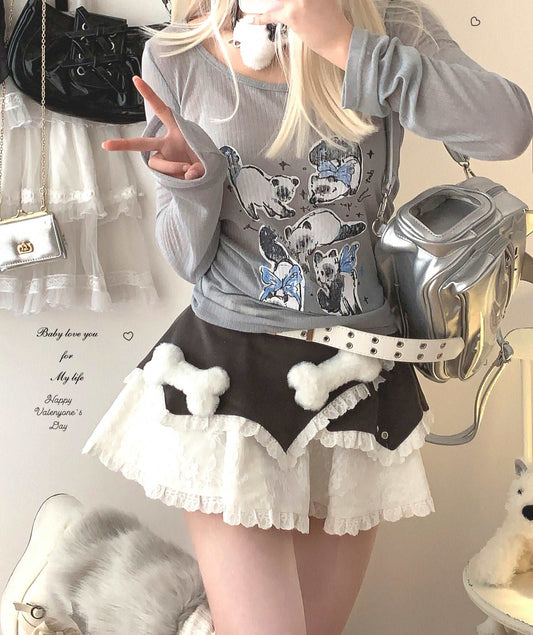 Dormir Doll Y2K Plush Bone Blue & Gray Lace Ruffled Mini Skirt