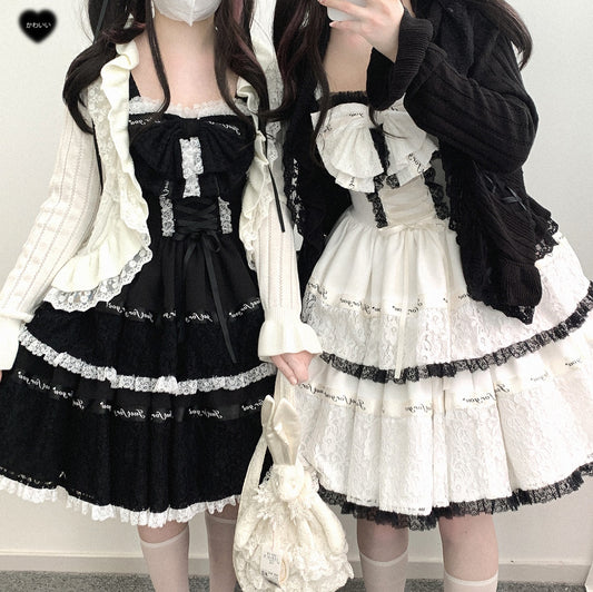 Kitten Bullet Lace Rose Story Black White Dress