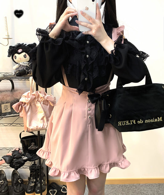 Kitten Bullet Jirai Kei Doll Mode Lace Pink Black Blue Suspender Skirt