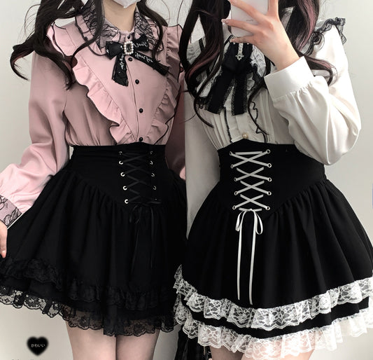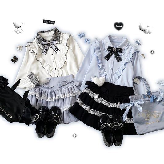 Kitten Bullet Jirai Kei Love Contract Lace Doll Collar White & Black Shirt Blouse