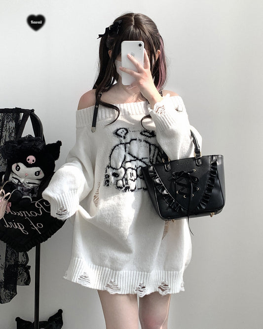Kitten Bullet Taboo Angel Puppy Gray White Black Sweater