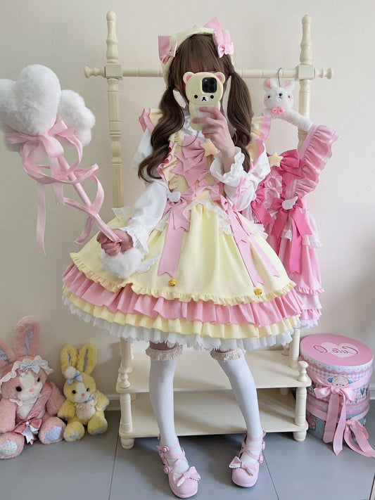 Little Star Wings Anime Magical Girl Lolita Pink Blue Green Purple Strap Dress
