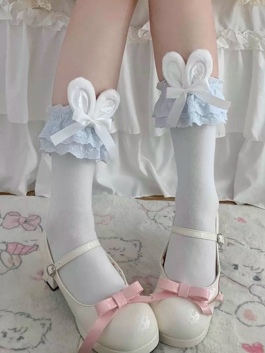 Lolita Cute Summer Rabbit Ears Black White Pink Blue Socks