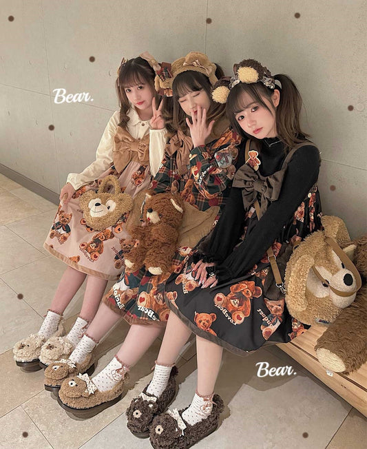 Puffy Sheep Duidui Bear Winter Beige Pink Brown Snow Boots