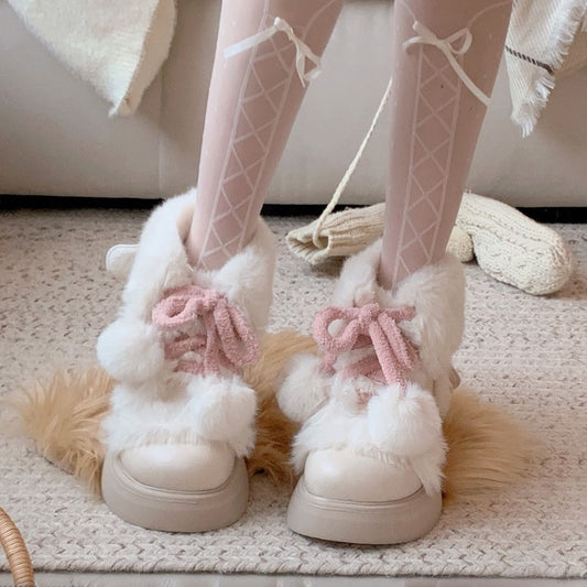 Puffy Sheep Lolita Fluffy Cupid Cute Pompom Balls Winter Fur Velvet Cotton Shoes Snow Boots