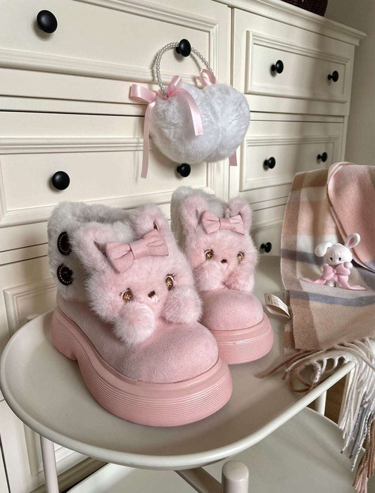 Puffy Sheep Fluffy Zoo Panda Puppy Rabbit Black Pink Brown Snow Boots