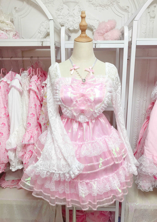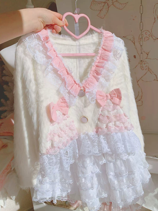 Candy Fairy Spring Lady Lace Knit White Pink Cardigan