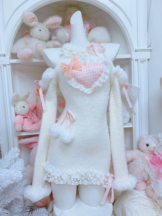 Candy Fairy Plaid Pink Heart Bodycon Fuzzy Dress