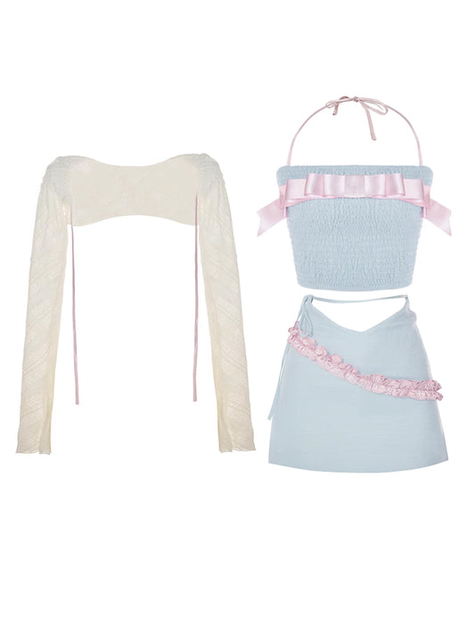 Serendipity Sweet Sexy Small Blue Tank Top & Mini Skirt & Cardigan Three Piece Set