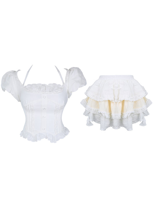 Serendipity Swan Dream First Love White Shirt & Ruffle Skirt Two Piece Set