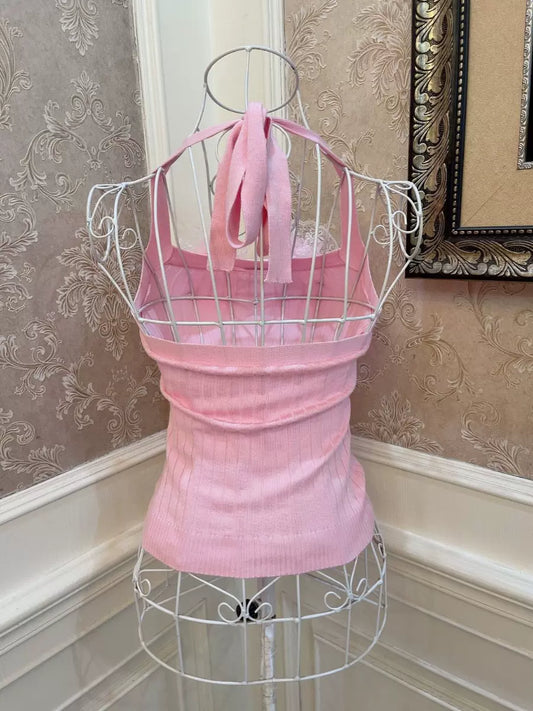 Sweetheart Princess Balletcore Pink Bow Slim Fit Camisole Top