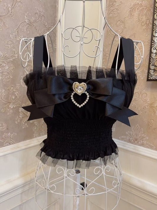 Sweetheart Princess Balletcore Organza Black White Camisole Top