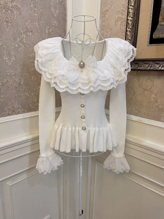 Sweetheart Princess Black White Ruffled Trumpet Sleeve Sweater