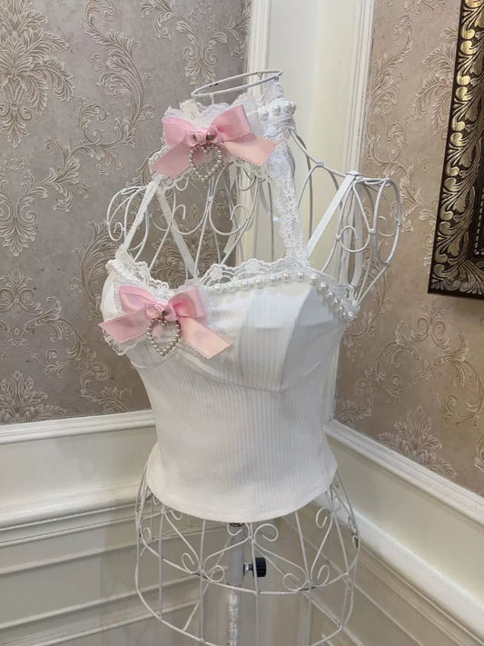 Sweetheart Princess Halter Neck Rose White Camisole Top