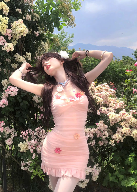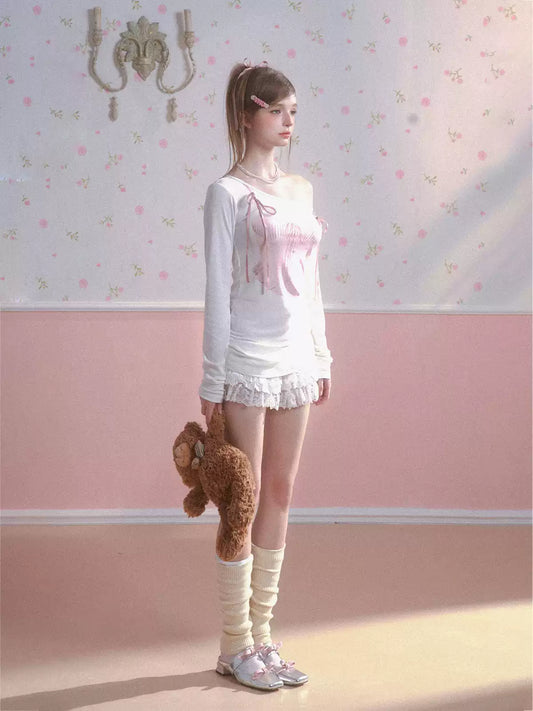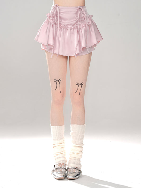 Young Eyes Coquette Swan Cream Pink Ruffle Short Skirt