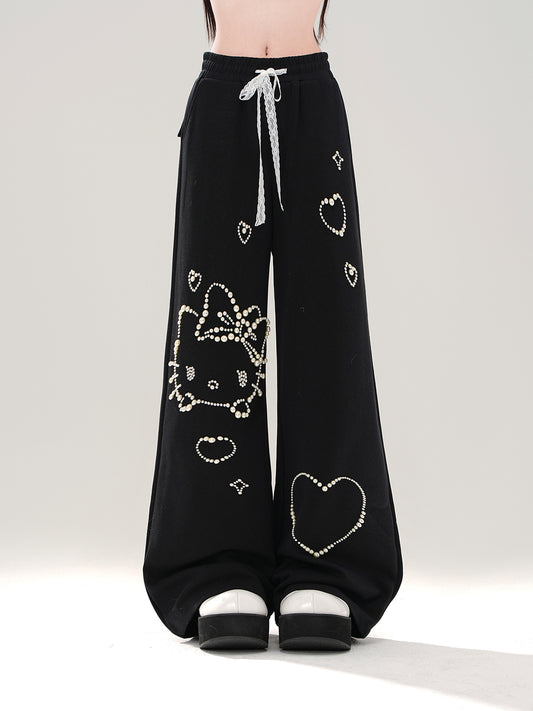 Young Eyes Electronic Kitty Black Gray Elastic Waist Sweatpants