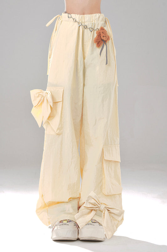 Young Eyes Pie Bow Pink & Yellow Elastic Waist Gathered Pants