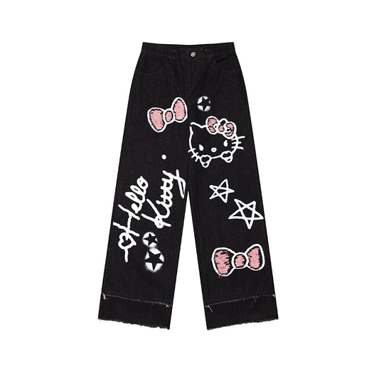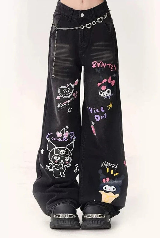Young Eyes Rainy Night Black Ripped Baggy Jeans