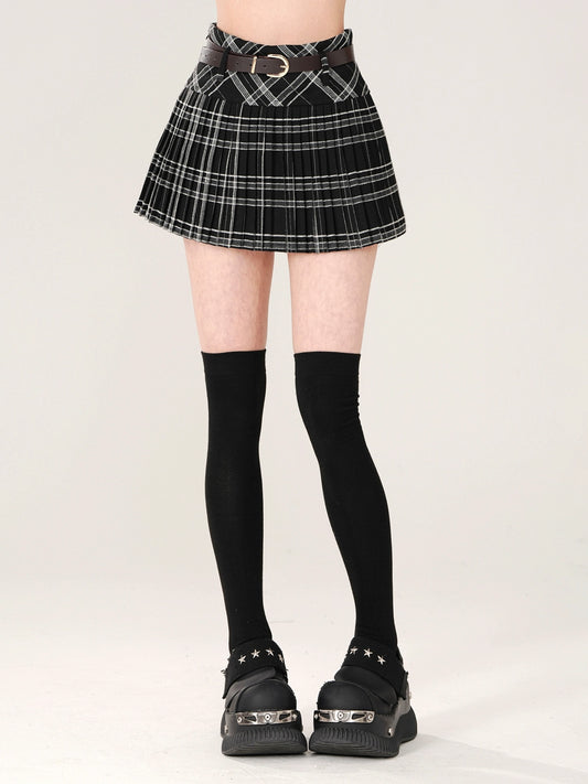 Young Eyes Retro Story Red Yellow Plaid Pleated Skirt
