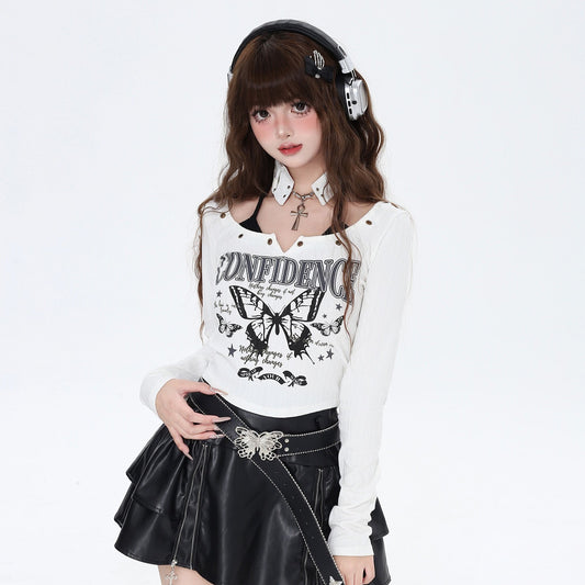 Crazy Girl Deep Wild Butterfly Black Cream Sweater Top
