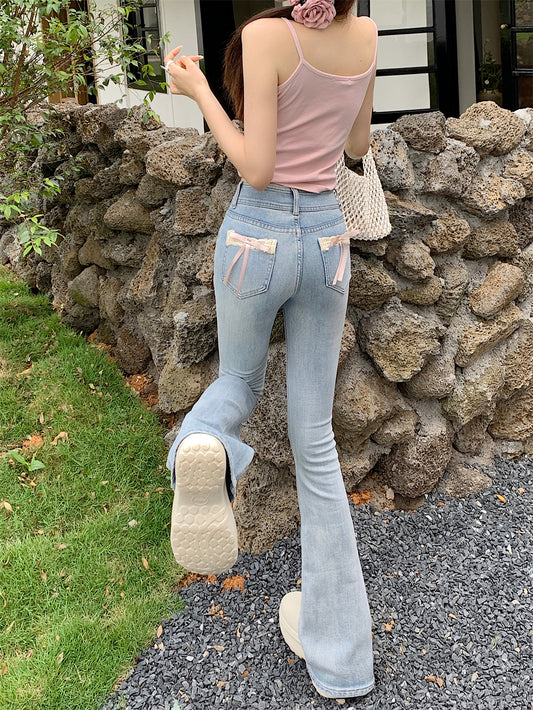 Street Cute Pink Ribbon High Waist Jeans Pants