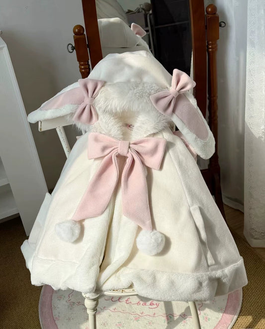 Lolita Kitten Calls Rabbit Ears White Pink Jacket Cape Cloak