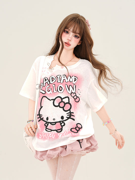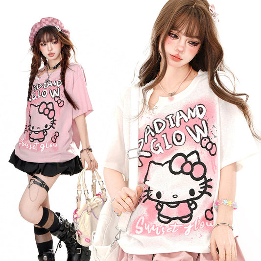 En venteYoung Eyes Kawaii Pink Cat Sheer Top