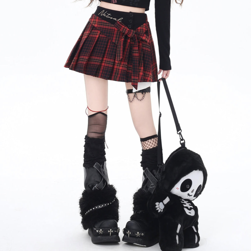 Crazy Girl Cookies Pineberry Plaid Red Pleated Skirt