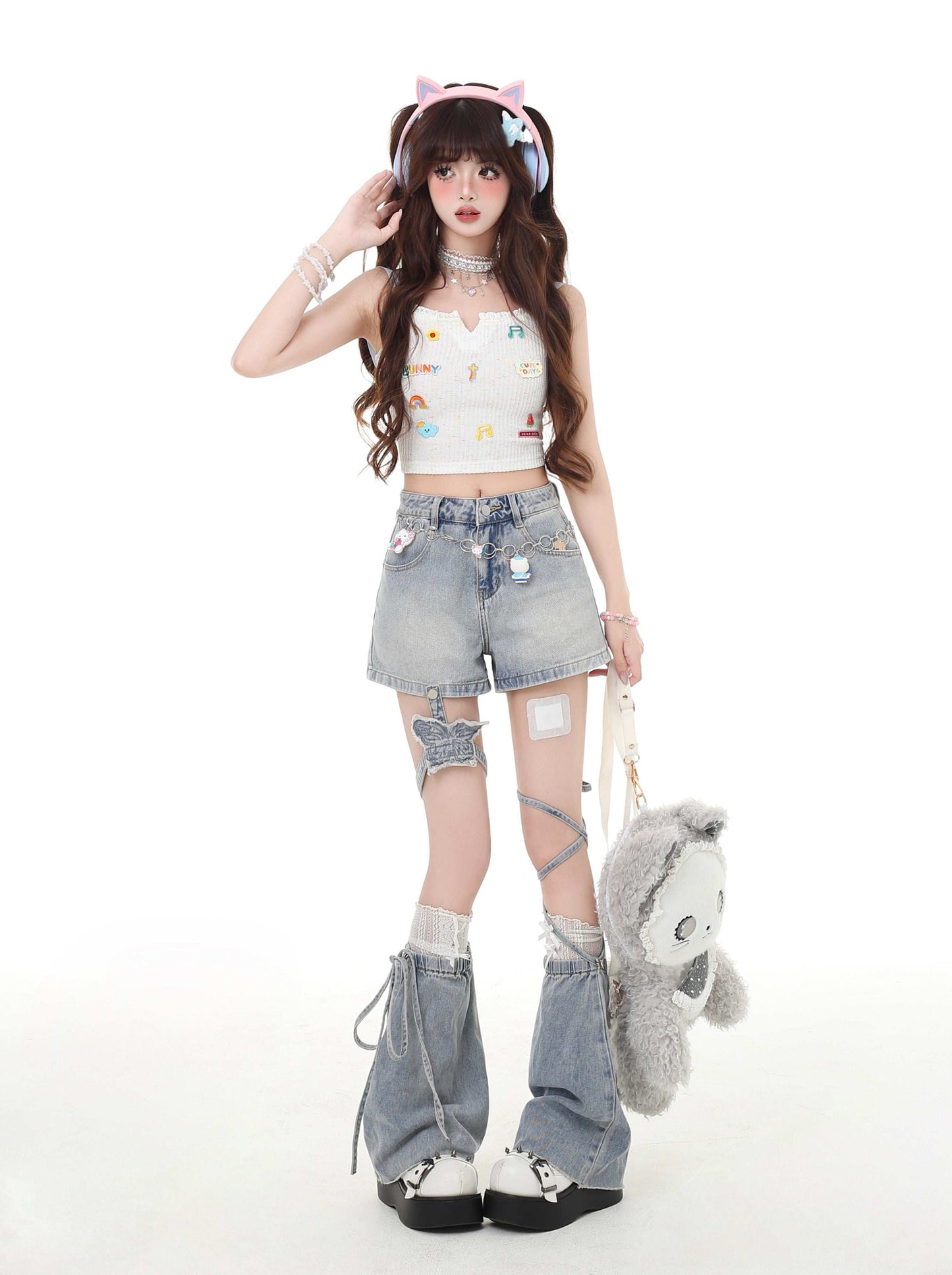 Crazy Girl Crushed Ice Blue Denim Shorts & Leg Warmers