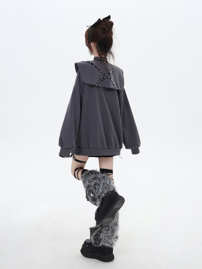 Crazy Girl Starry Night Bow Pink Gray Jacket