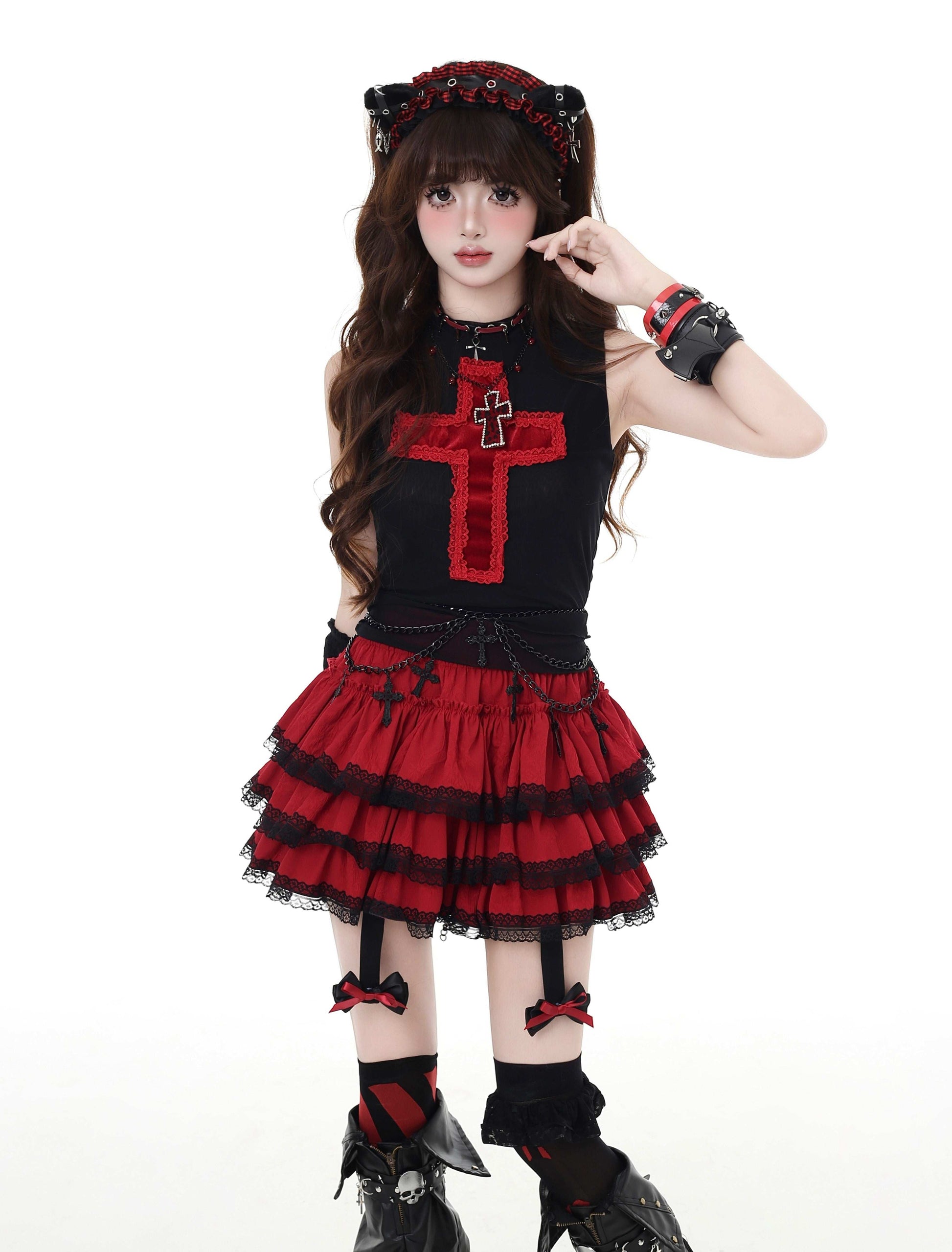 Crazy Girl Super Cake Pink Red Black Elastic Skirt Bloomers
