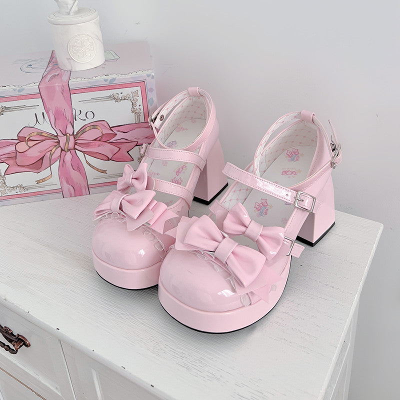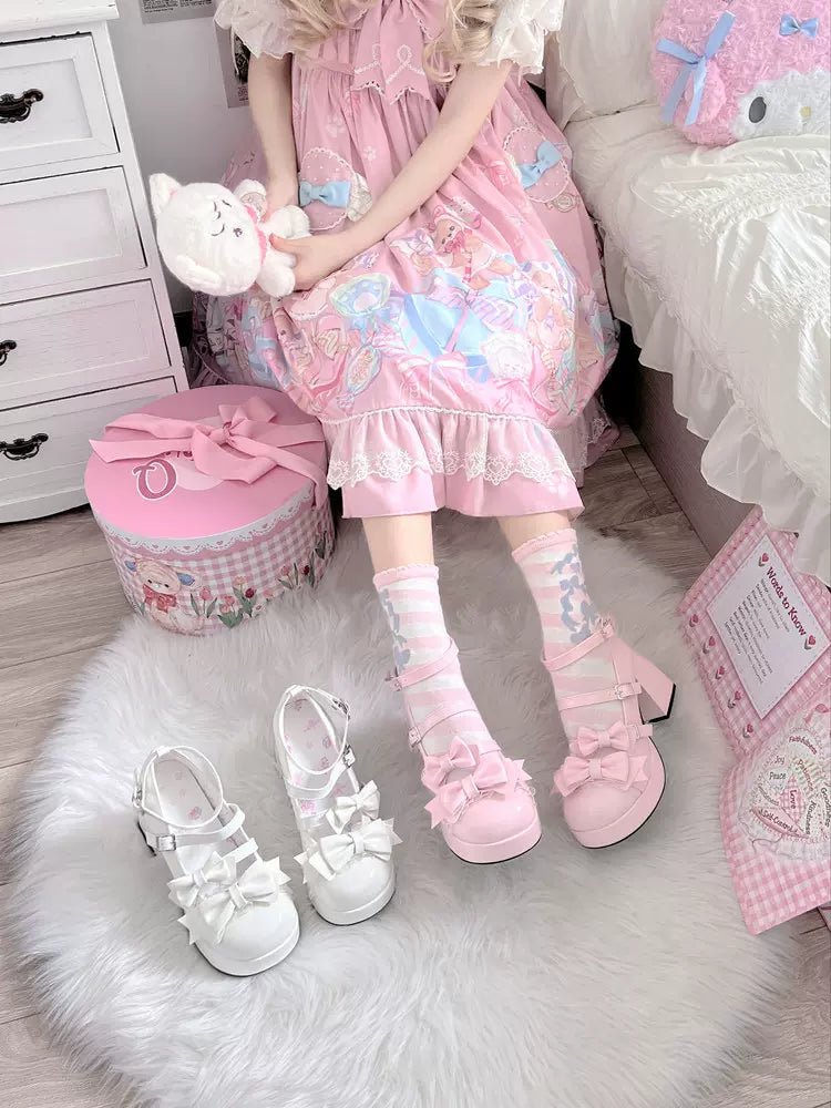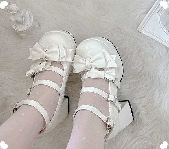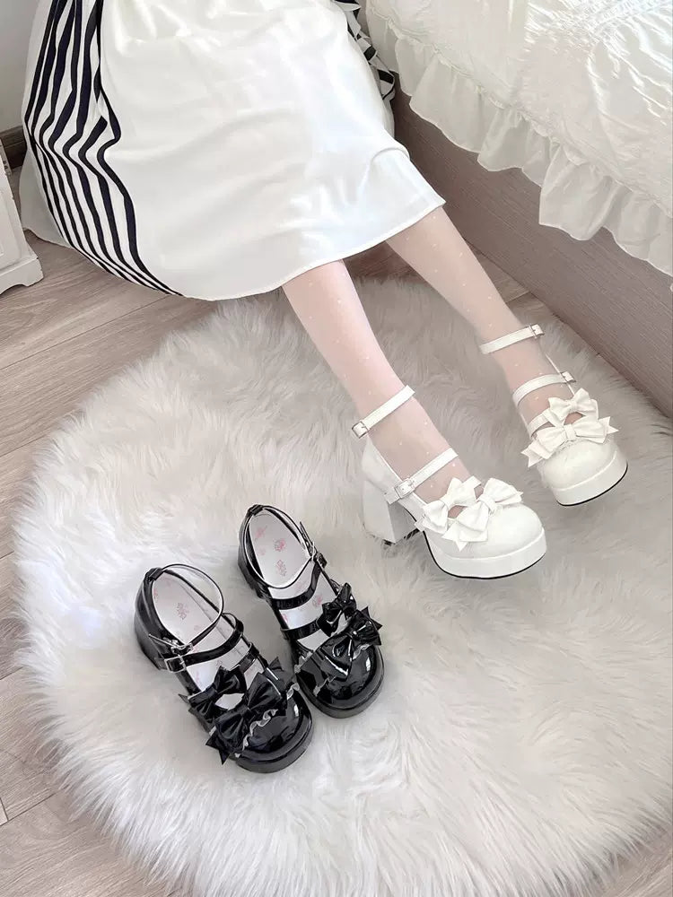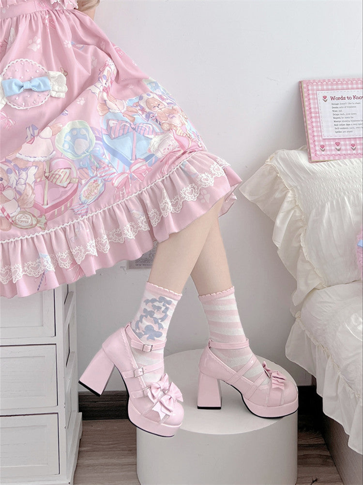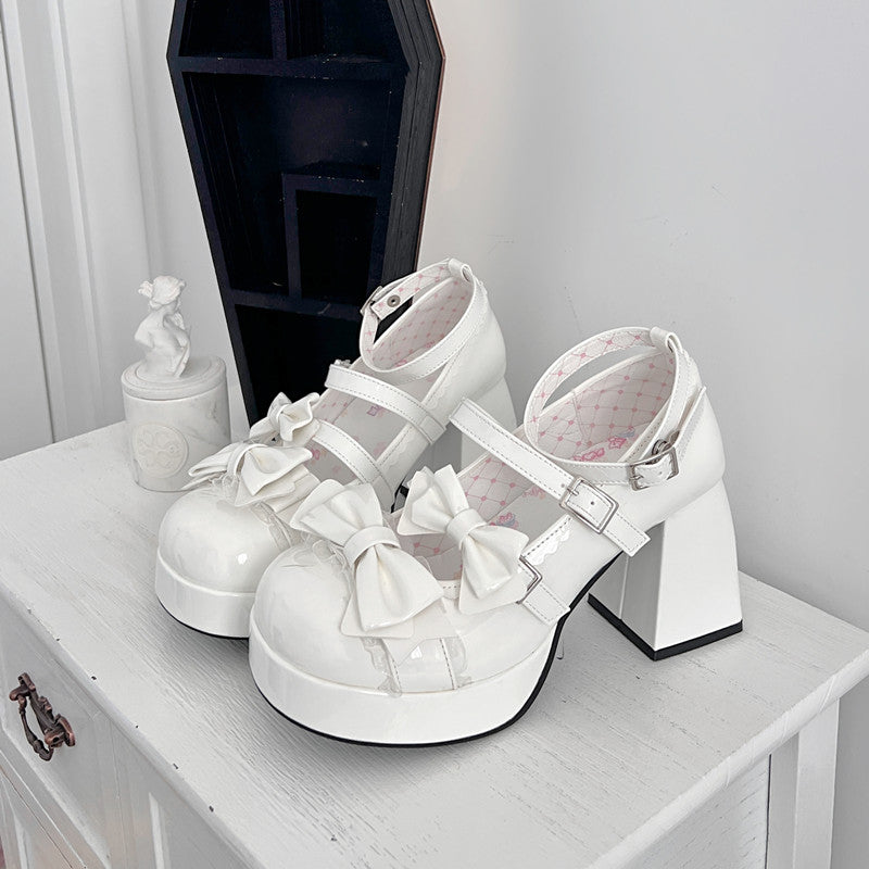 Cuckoo Lolita Princess Jane White Black Pink High Heels Shoes
