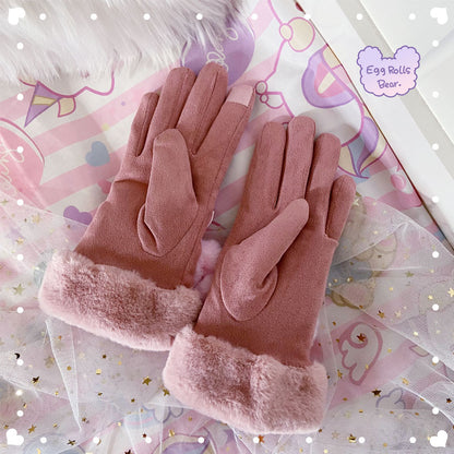 Handmade Purple Devil Melody Cinnamon Dog Pompom Winter Suede Gloves