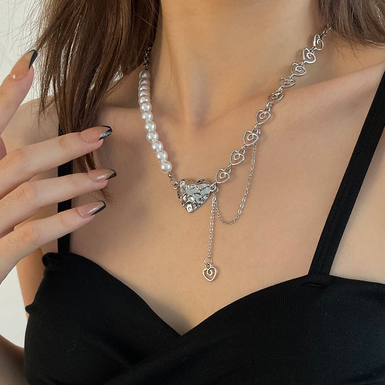 Sweet Gem Silver Chain Pearl Stitching Cross Necklace
