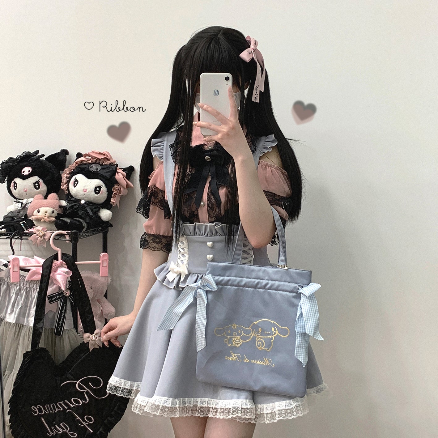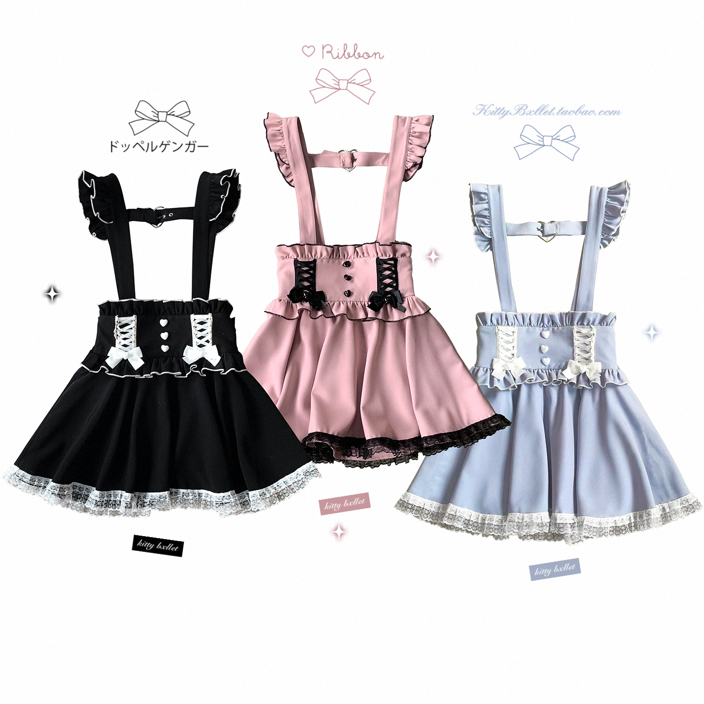 Kitten Bullet Jirai Kei Doll Mode Lace Pink Black Blue Suspender Skirt
