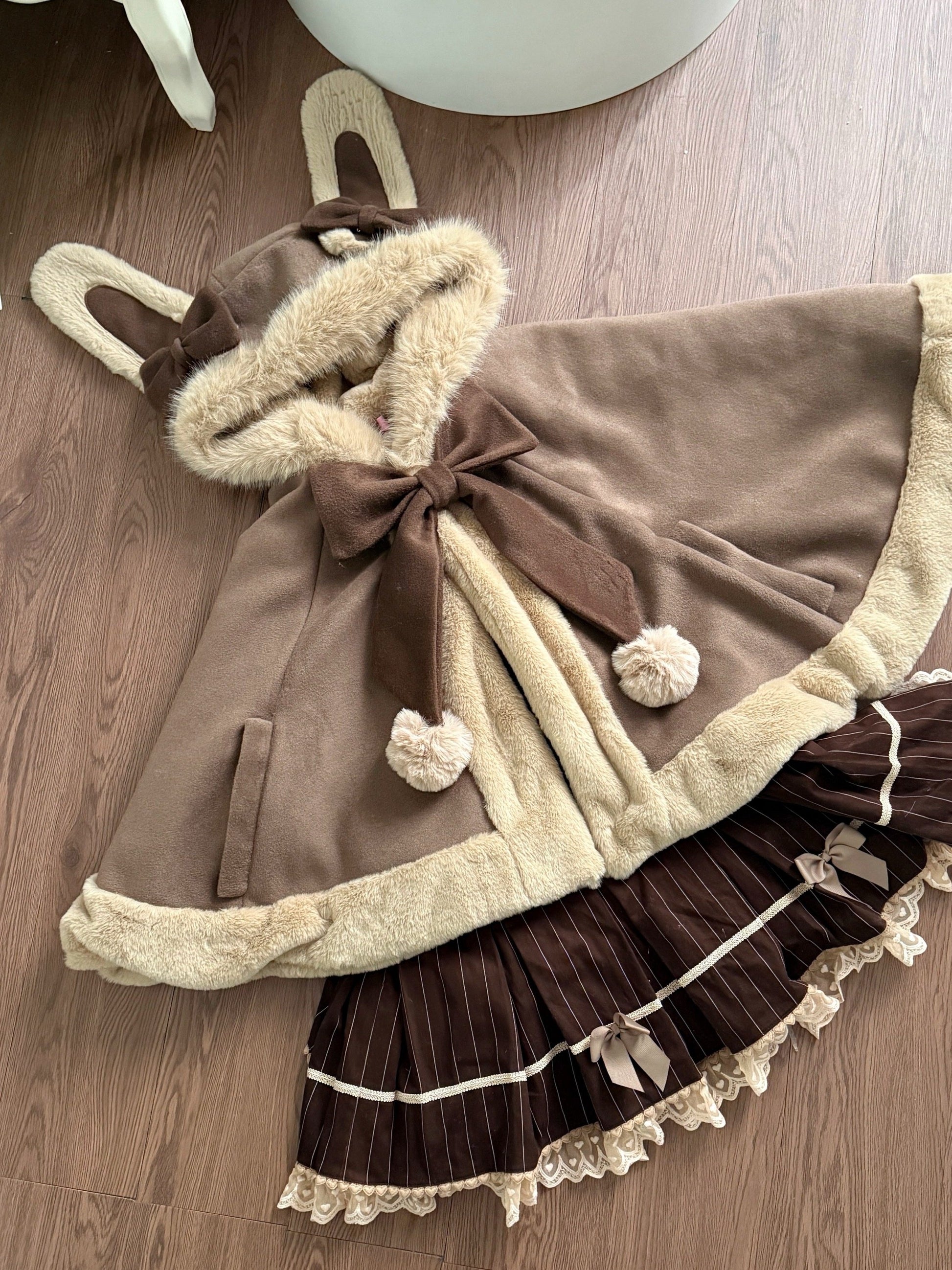 Lolita Kitten Calls Rabbit Ears White Pink Jacket Cape Cloak