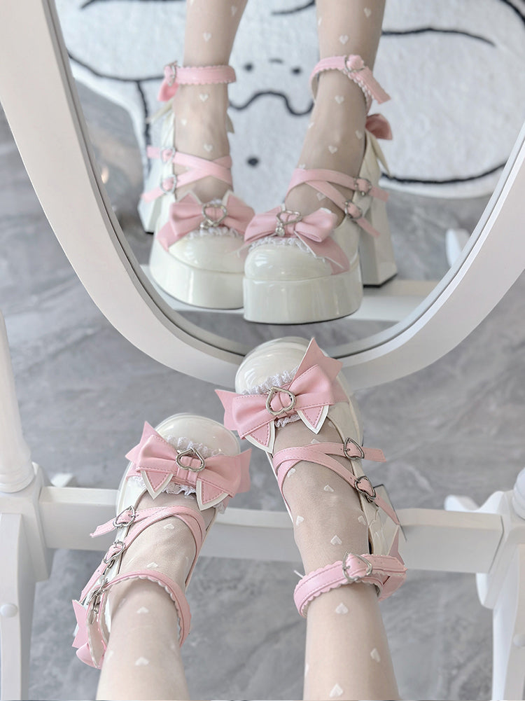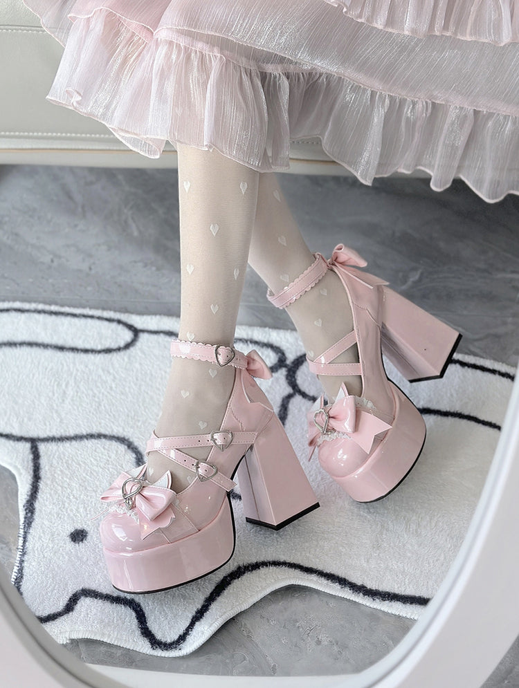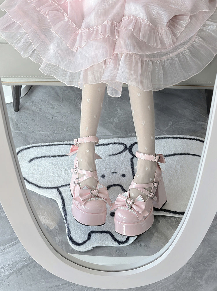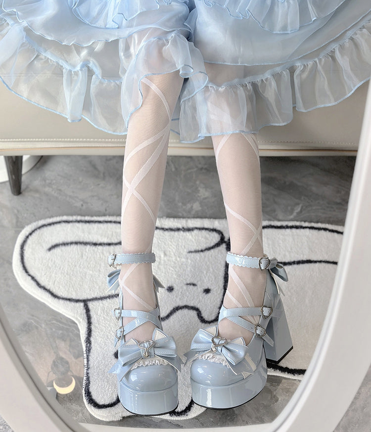 Love Song Cat Party Pastel White Pink Blue Black Lolita High Heels Shoes