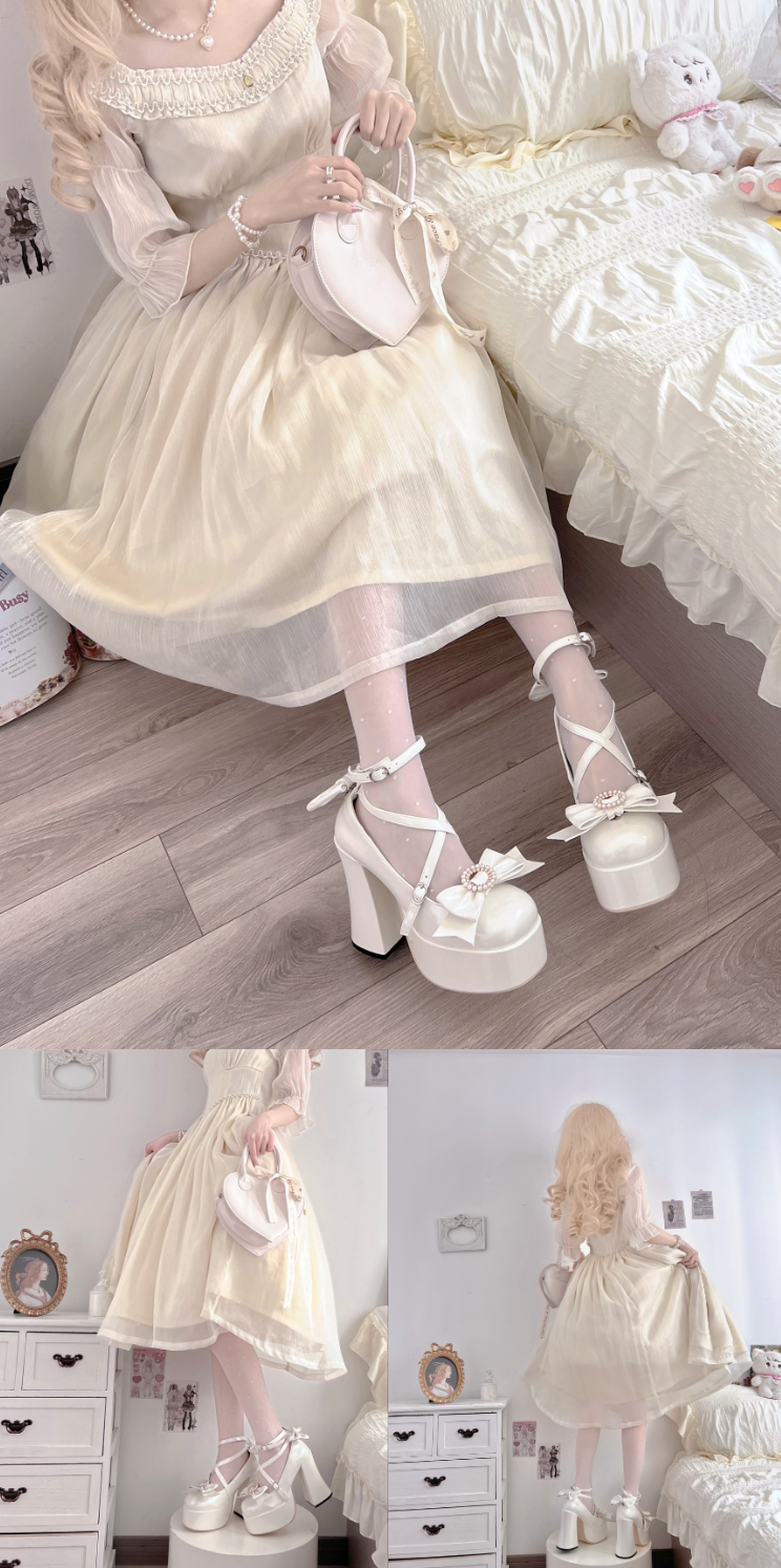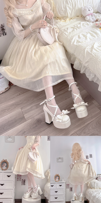 Walpurgis Night Pearl Wreath Bow Sweet Princess EGL High Heels Shoes