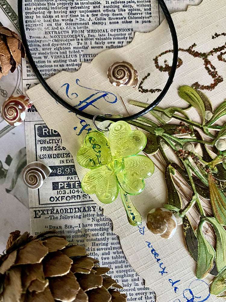 Crystal Transparent Lucky Fortune Four Leaf Clover Power Energy Necklace Pendant