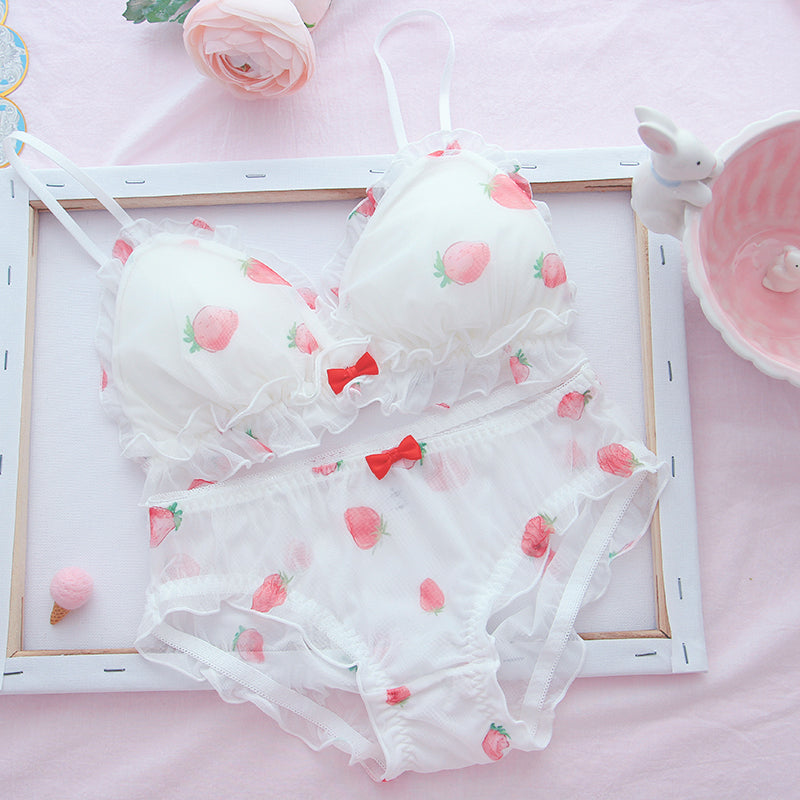 Red Strawberry Pattern White Panties Underwear Lingerie