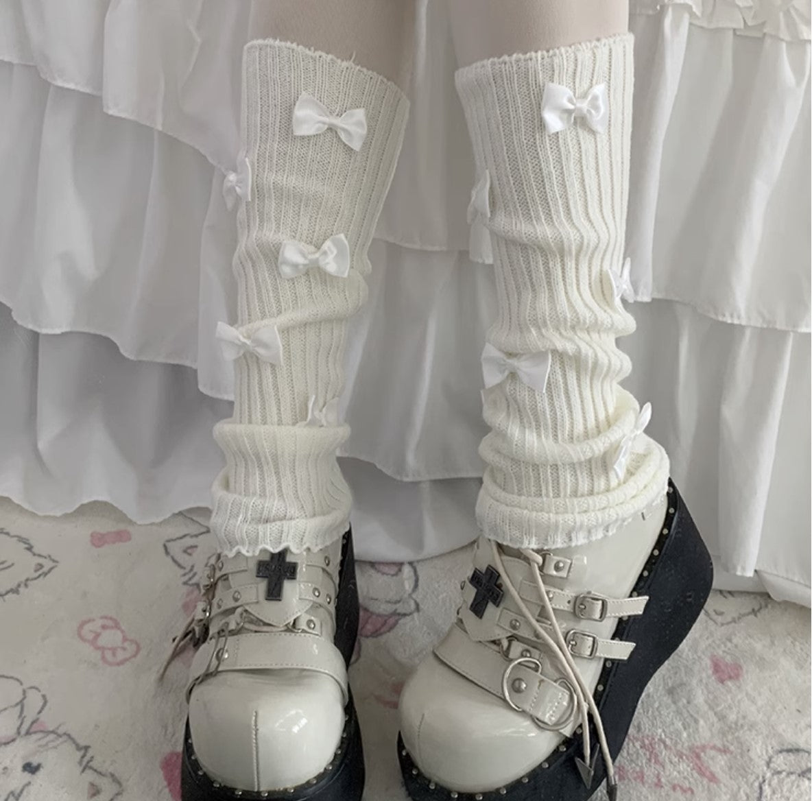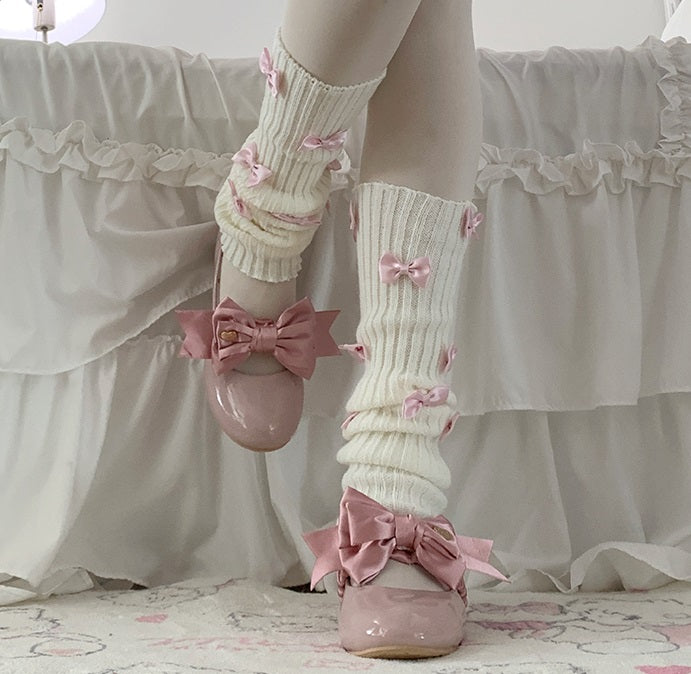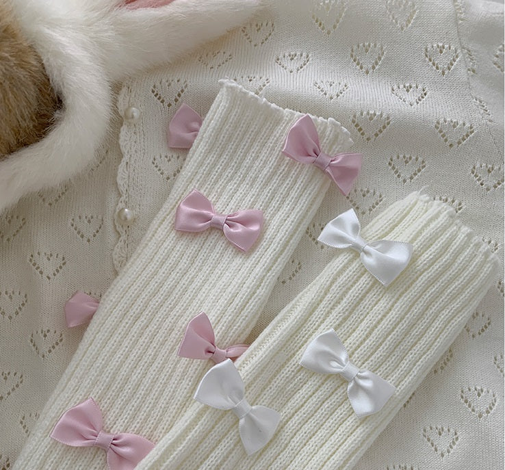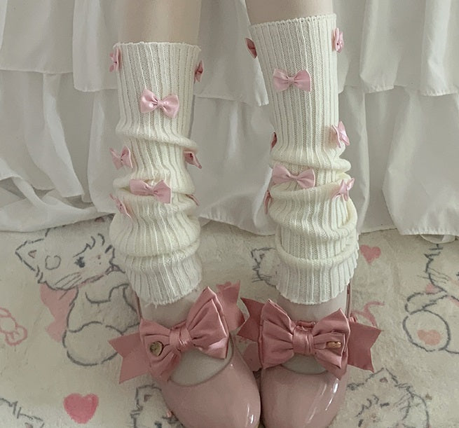 Sweet Lolita Coquette Bow Pink & White Knit Leg Warmers