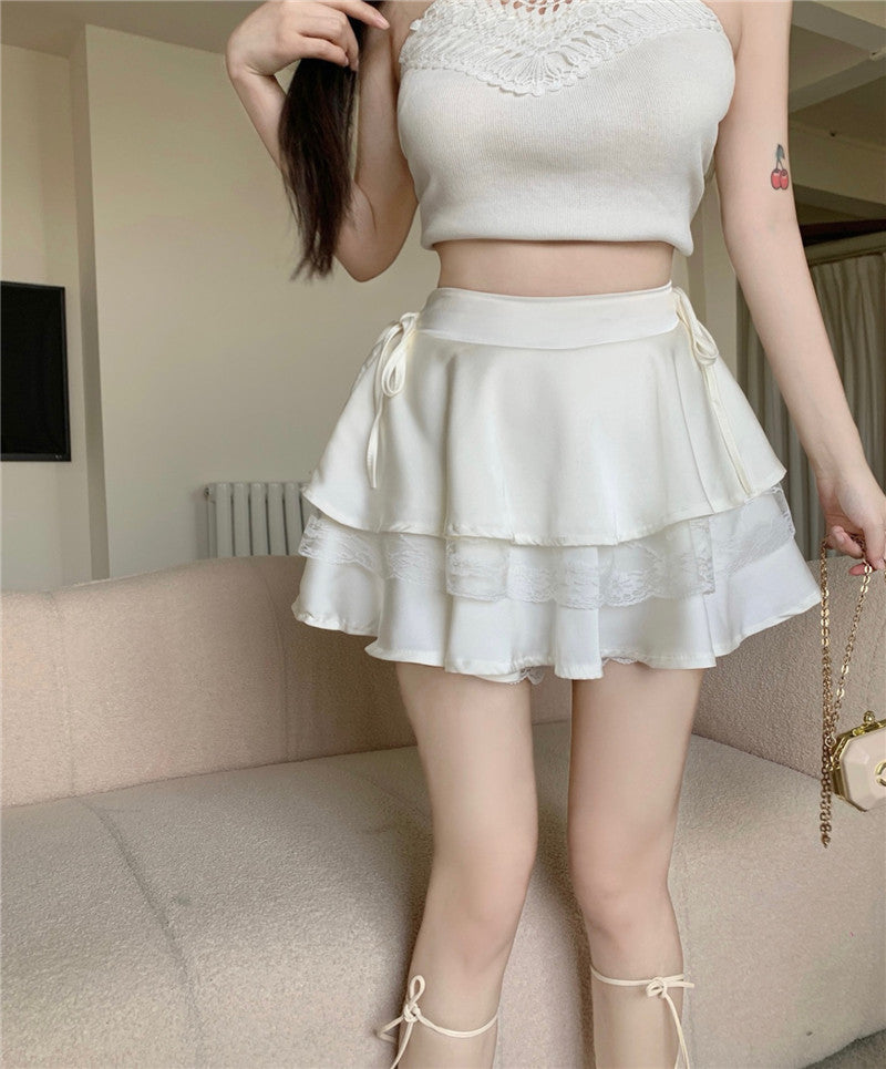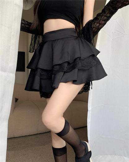 Princess Ruffled High Waist Cake Fluffy Layered White Black Pink Mini Skirt