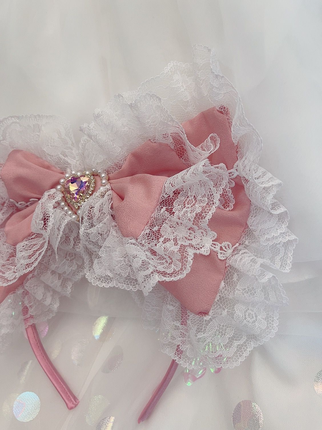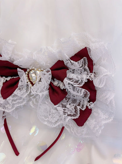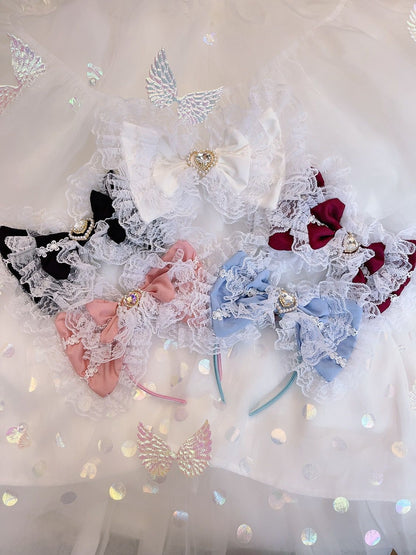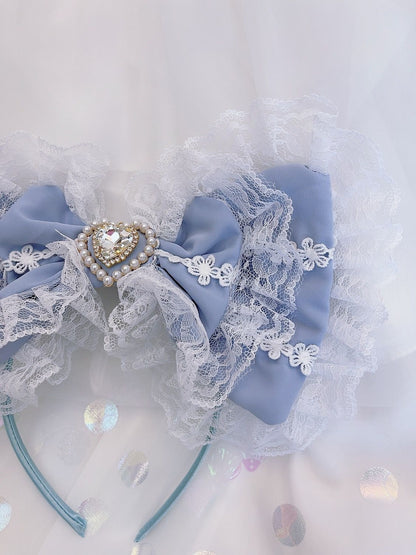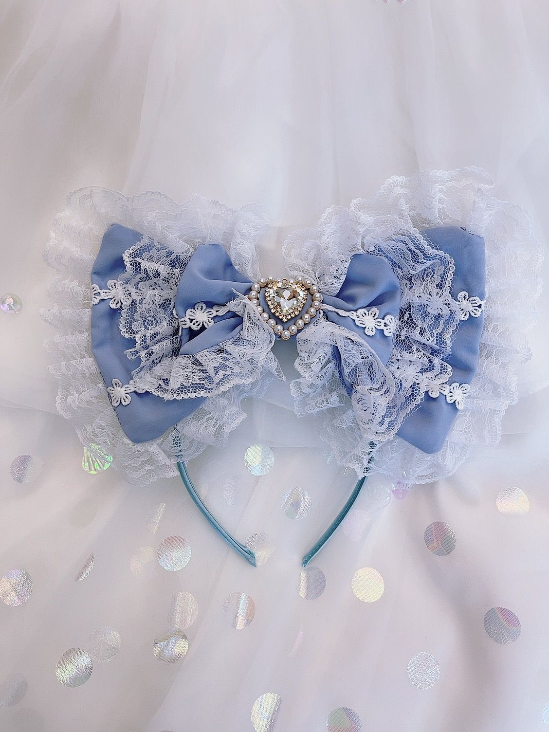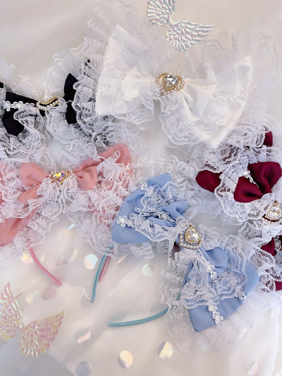 Sweetheart Princess Bow Lace Black Blue Pink Red White Headband Hairband Hair Accessories