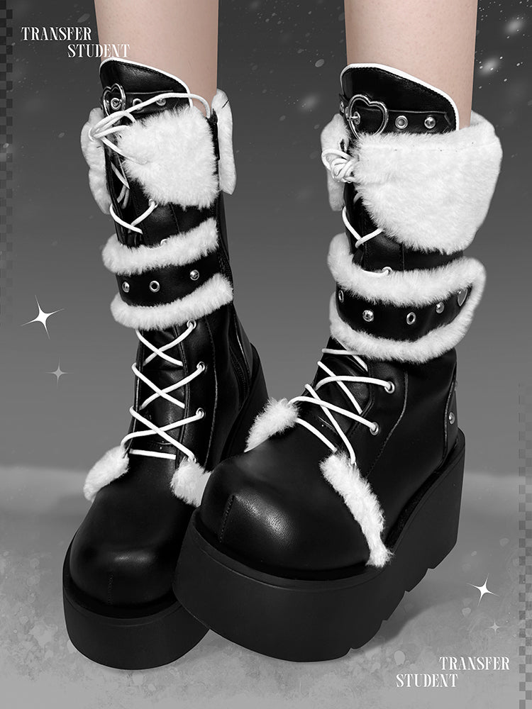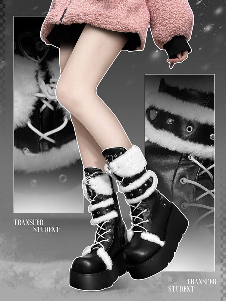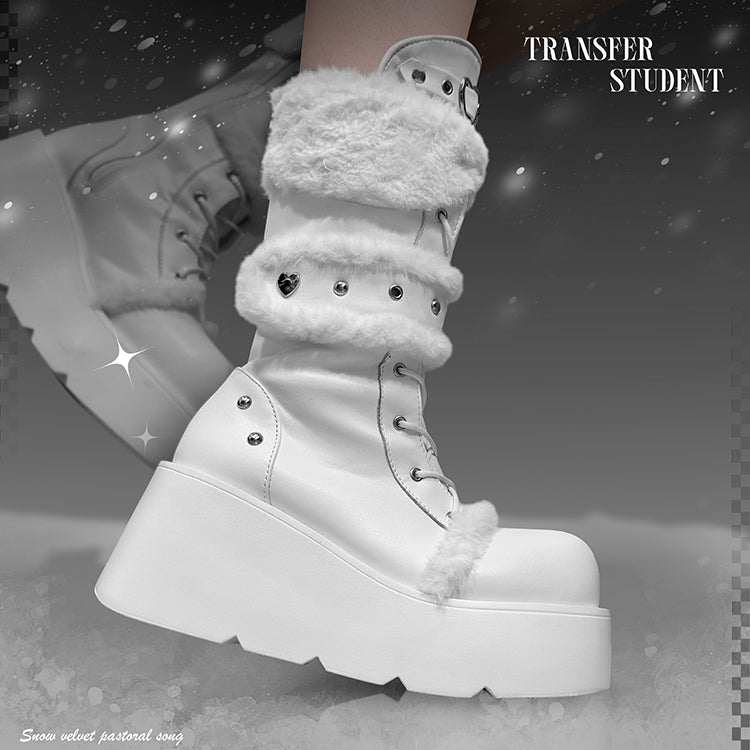 Transfer Student Snow Velvet Pastoral Pink Black White Tall Boots Shoes