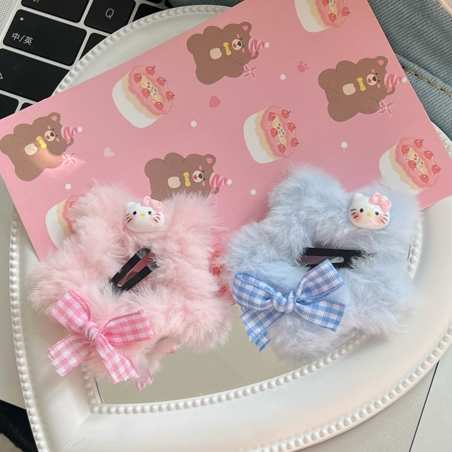 Y2K Star Plush Plaid Blue Pink Kitty Cat Hair Clip Hair Accessories