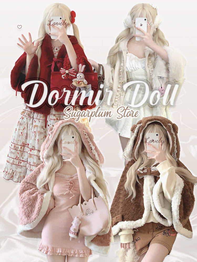 Diamond Sweetheart Christmas Red Angora Rabbit Dress Cape Two Piece Set