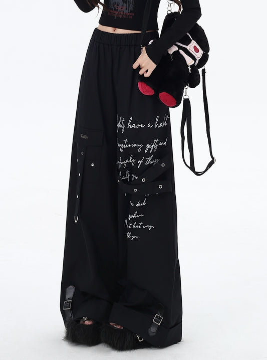 Crazy Girl Punk Letter Gray Black Baggy Pants