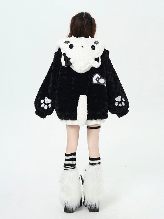 Crazy Girl Plush Party Cat Ears Black White Winter Jacket