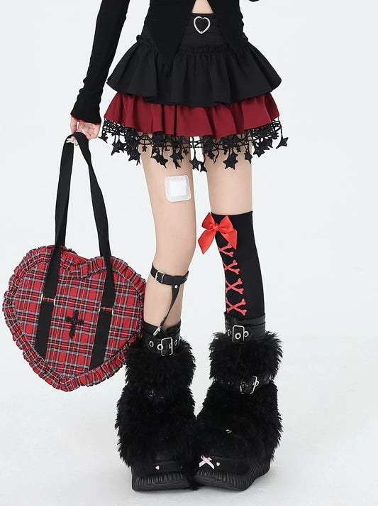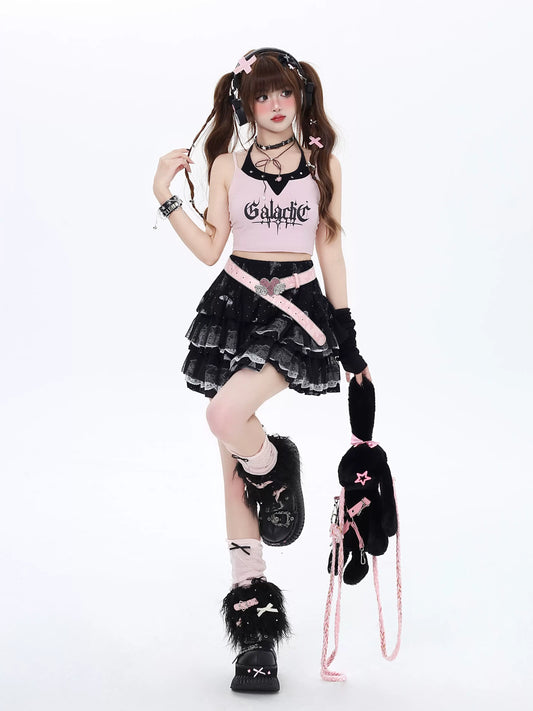 Crazy Girl Punk Aesthetics Cross Black Ruffle Skirt