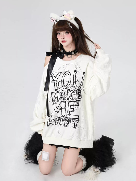 Crazy Girl You Make Me Happy Black White Sweatshirt